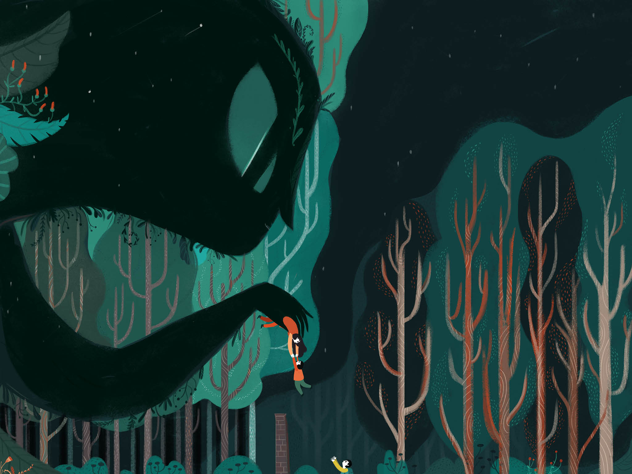 In der endgültigen Version ihres Buchs hat die Illustratorin einiges ausgelassen. «Es gibt fiktive Charaktere, die die Gesellschaft allgemein verurteilt», sagt Sanna. «Etwa die Schlepper. Das sind Kriminelle, die vom Leiden der Flüchtlinge finanziell profitieren. Doch oft sind die Leute den Schleppern für die Fluchthilfe dankbar. Diese Problematik war eine grosse Herausforderung innerhalb der Geschichte.» Schliesslich wurde der Schlepper im Buch ein abstraktes, monsterähnliches Wesen, das übermächtig ist, Familien auseinanderreisst und nicht fassbar ist.